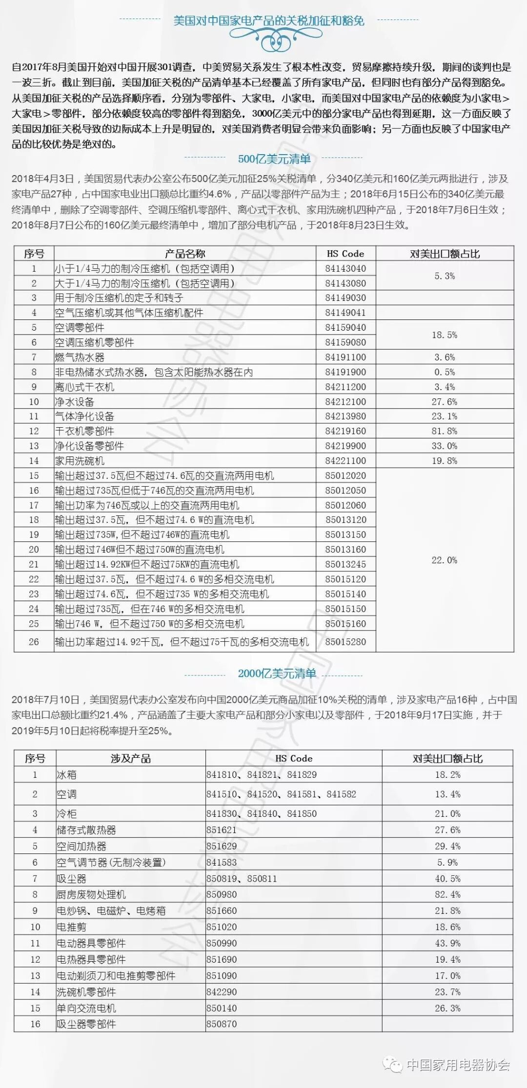 在全球贸易摩擦频繁发生的背景下,中国家用电器协会梳理分析了中国家电产品出口全球关...