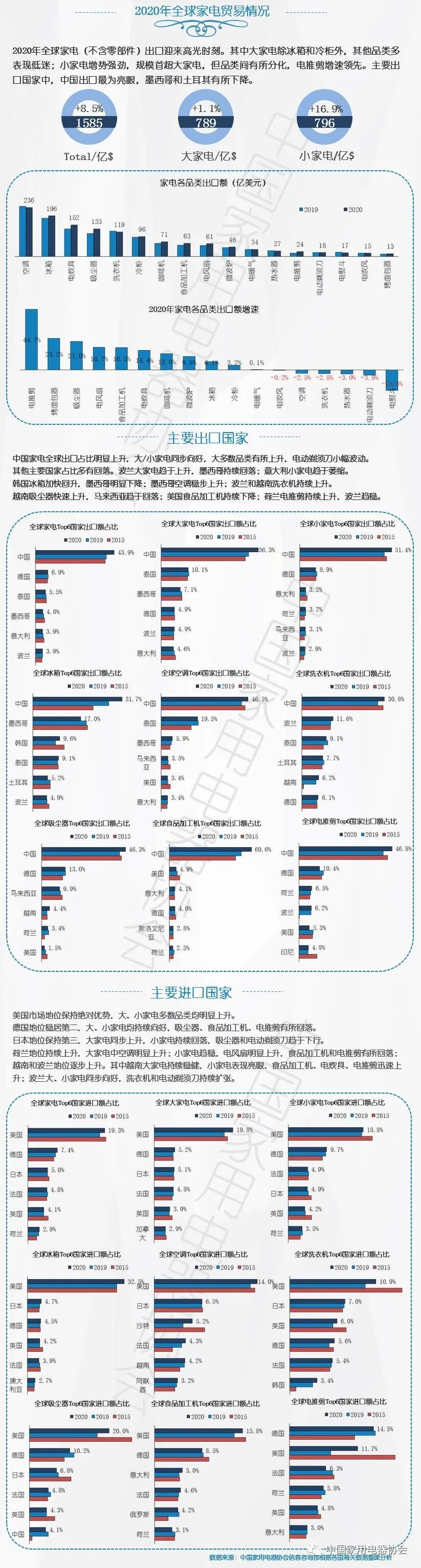 2020年全球家电(不含零部件)出口迎来高光时刻。其中大家电除冰箱和冷柜外,其他...