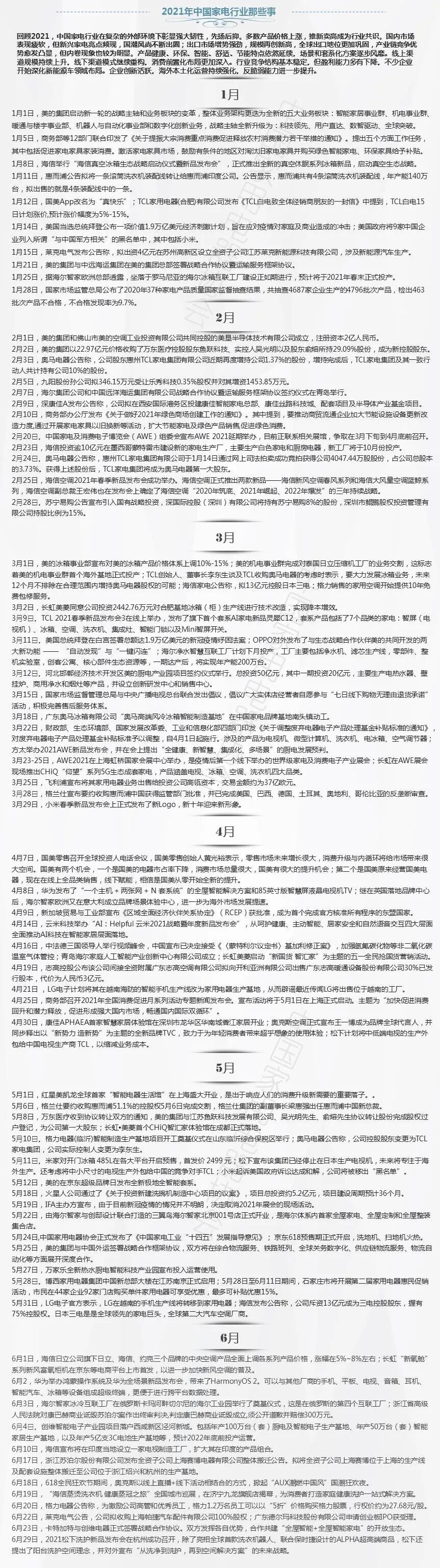 又到年终岁末之时,让我们一起回顾梳理2021年中国家电行业的那些事儿。...
