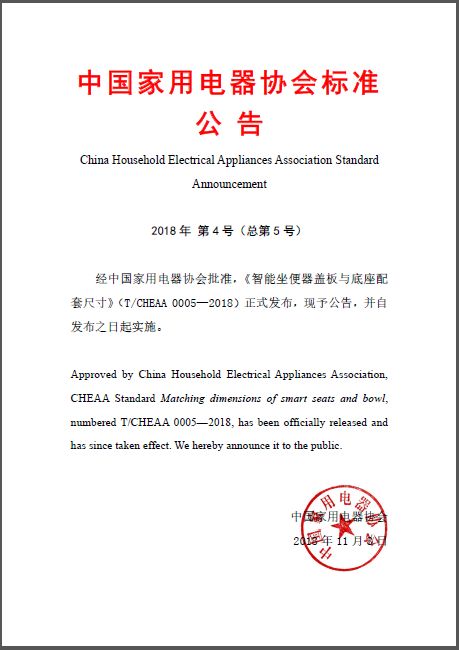 经中国家用电器协会批准,《智能坐便器盖板与底座配套尺寸》(T/CHEAA 000...