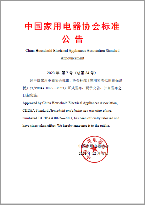经中国家用电器协会批准,协会标准《家用和类似用途保温板》(T/CHEAA 002...