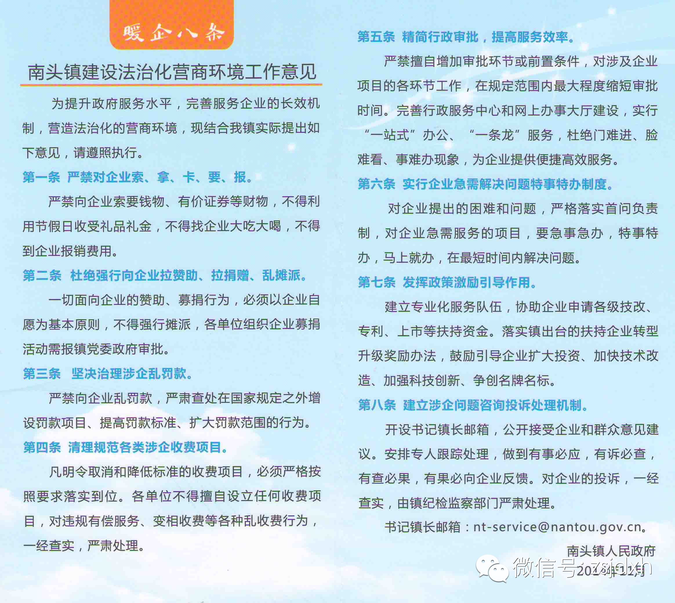 2024.03.11 11:45南头镇出台“暖企八条”建设法治化营商环境