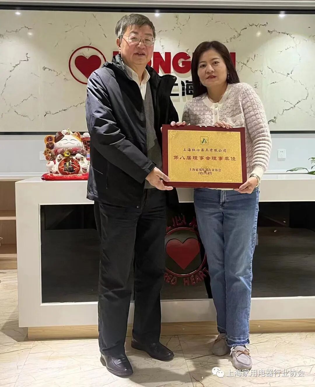 2月22日,上海家电协会副秘书长缪根走访上海红心器具有限公司,向周红总经理赠予...