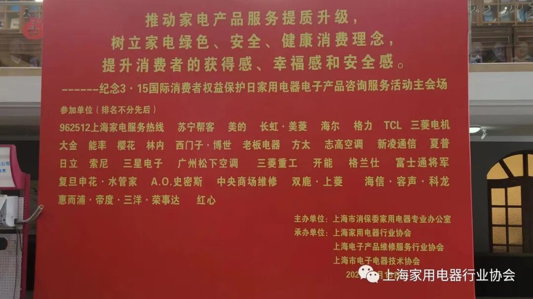 为纪念“3·15”国际消费者权益保护日,上海家用电器行业协会联合上海电子产品维修...