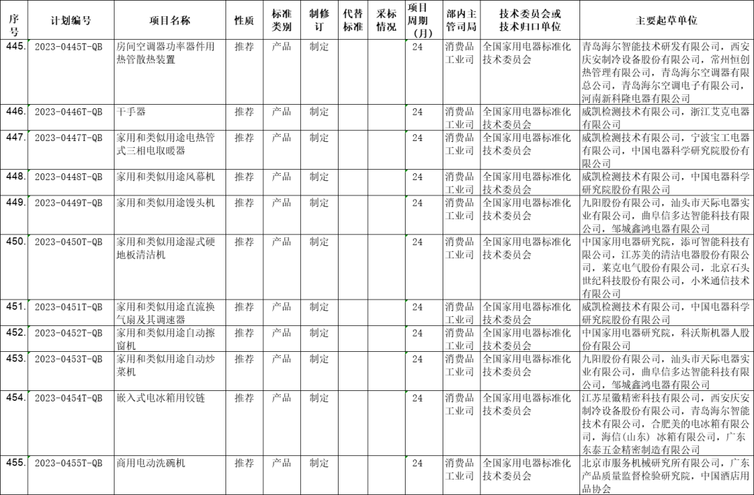 2024.03.11 14:33工信部发布多项家电标准制定计划