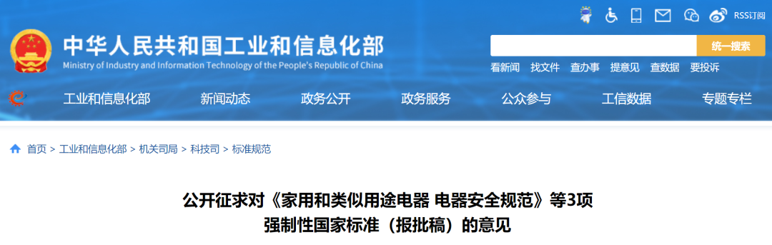 导 读日前,工信部公开征求对《家用和类似用途电器 电器安全规范》等3项强制性国家...