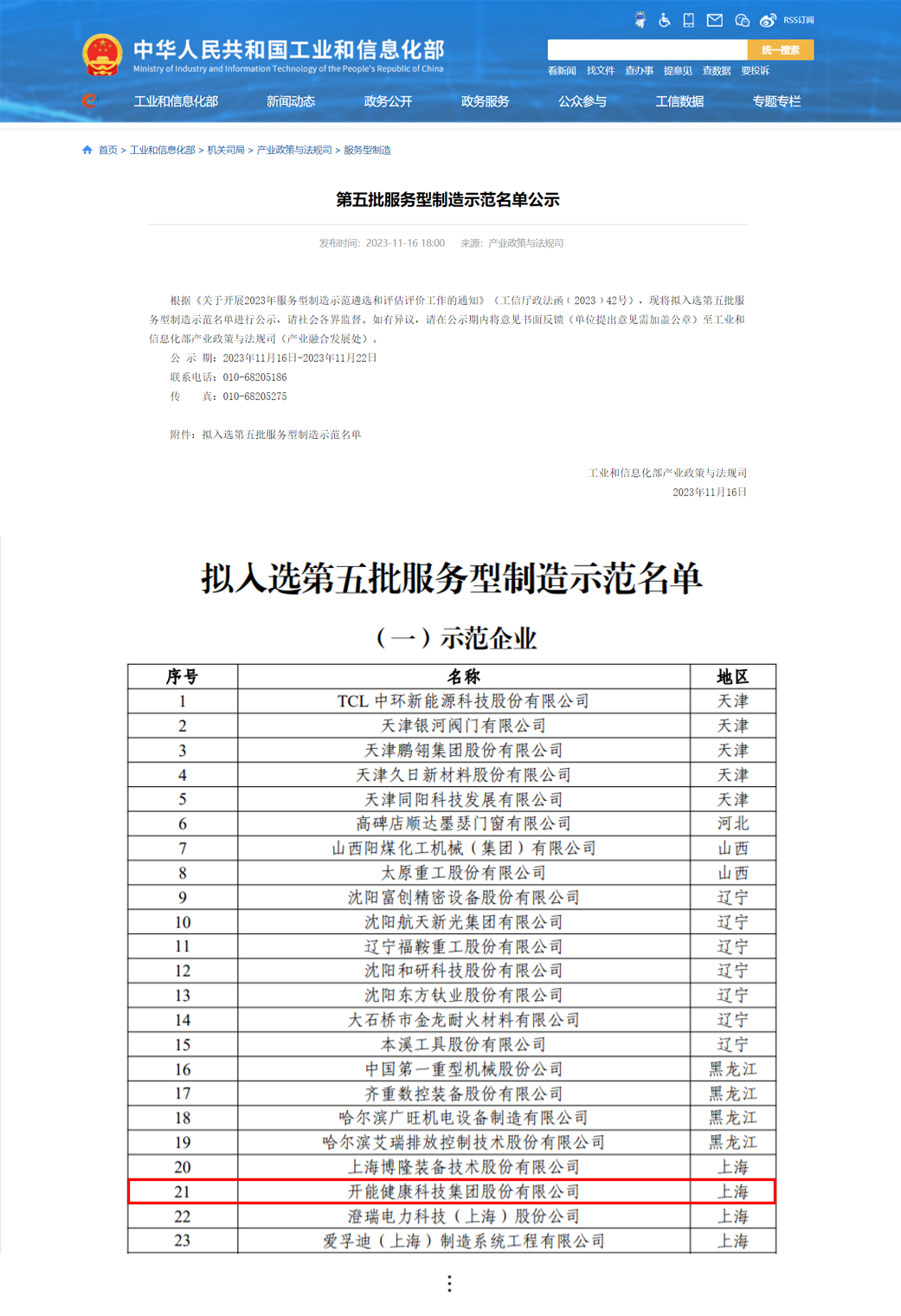 近日,工信部公示了第五批服务型制造示范名单,开能健康科技集团股份有限公司(以下简...