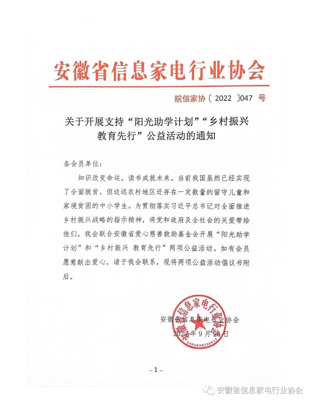 【通知文件】关于开展支持“阳光助学计划”“乡村振兴教育先行”公益活动的通知