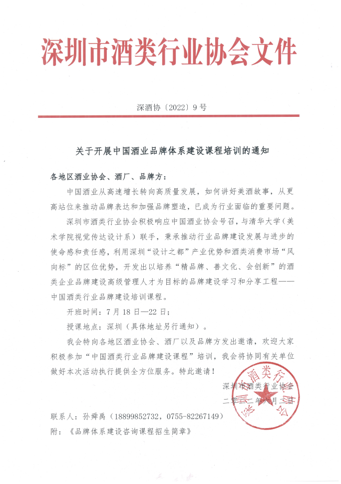 2022中国酒业品牌体系建设-高级研修班(首届)招生简章指导:中国酒业协会主办:...