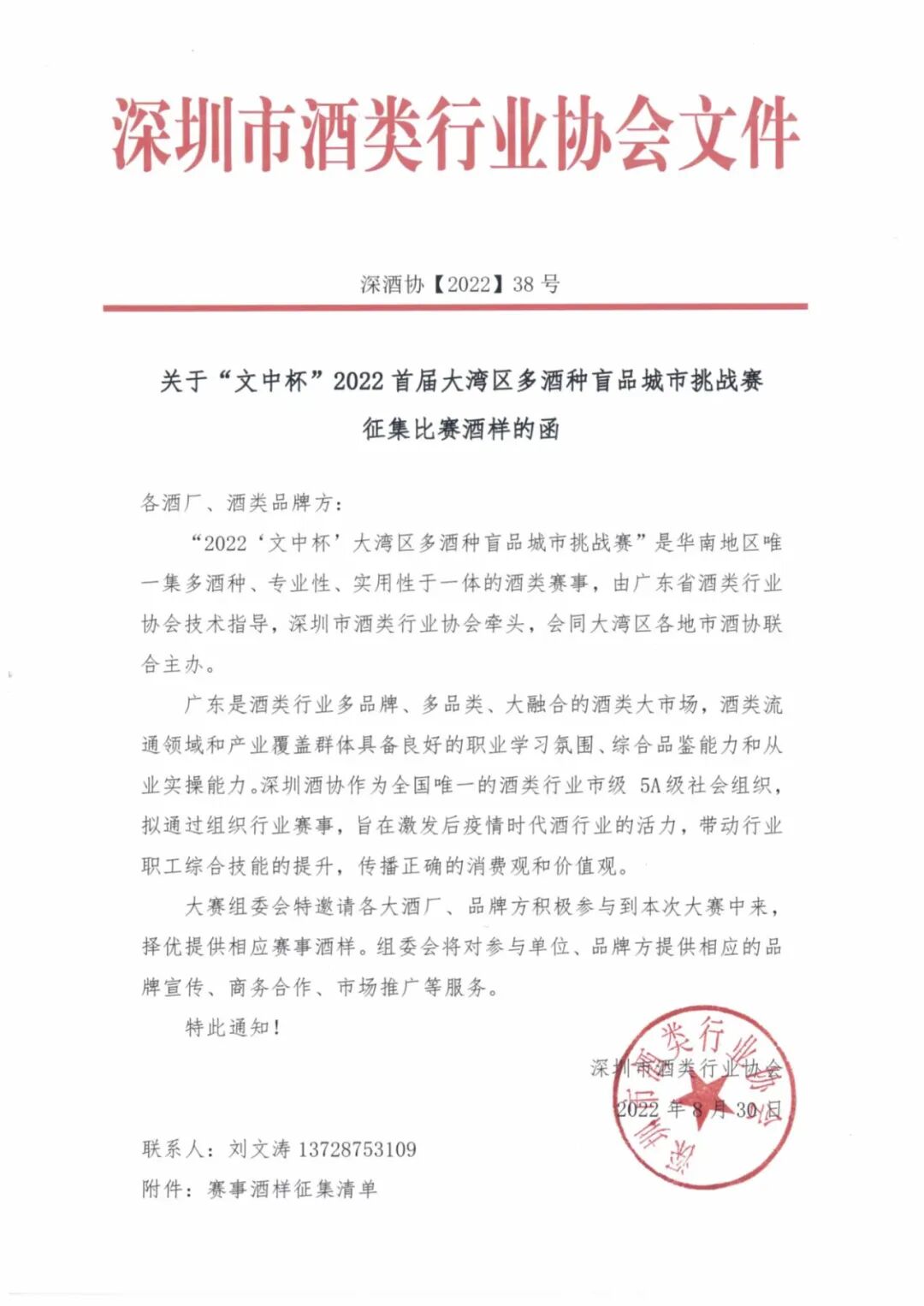 2024.03.15 15:252022首届大湾区多酒种盲品挑战赛酒样征集通知