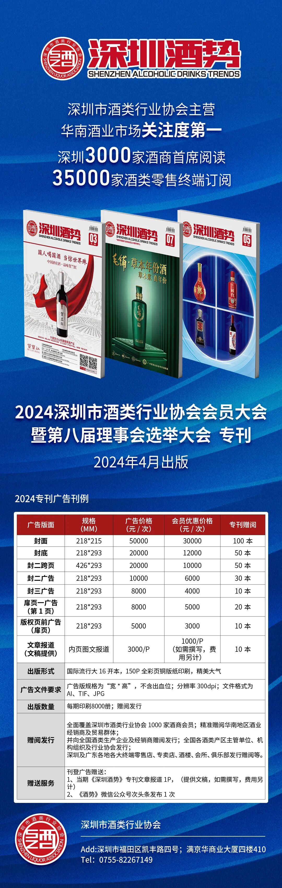 2024年度官方会刊《深圳酒势》和深圳酒协《会员通讯录》年后即将出版新刊,会刊面...