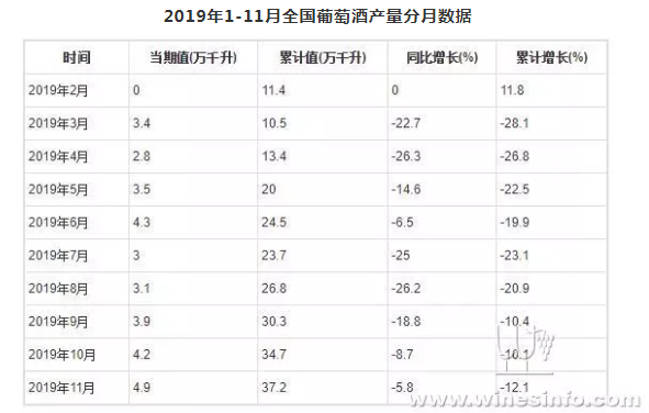 1-11月全国葡萄酒产量统计分析