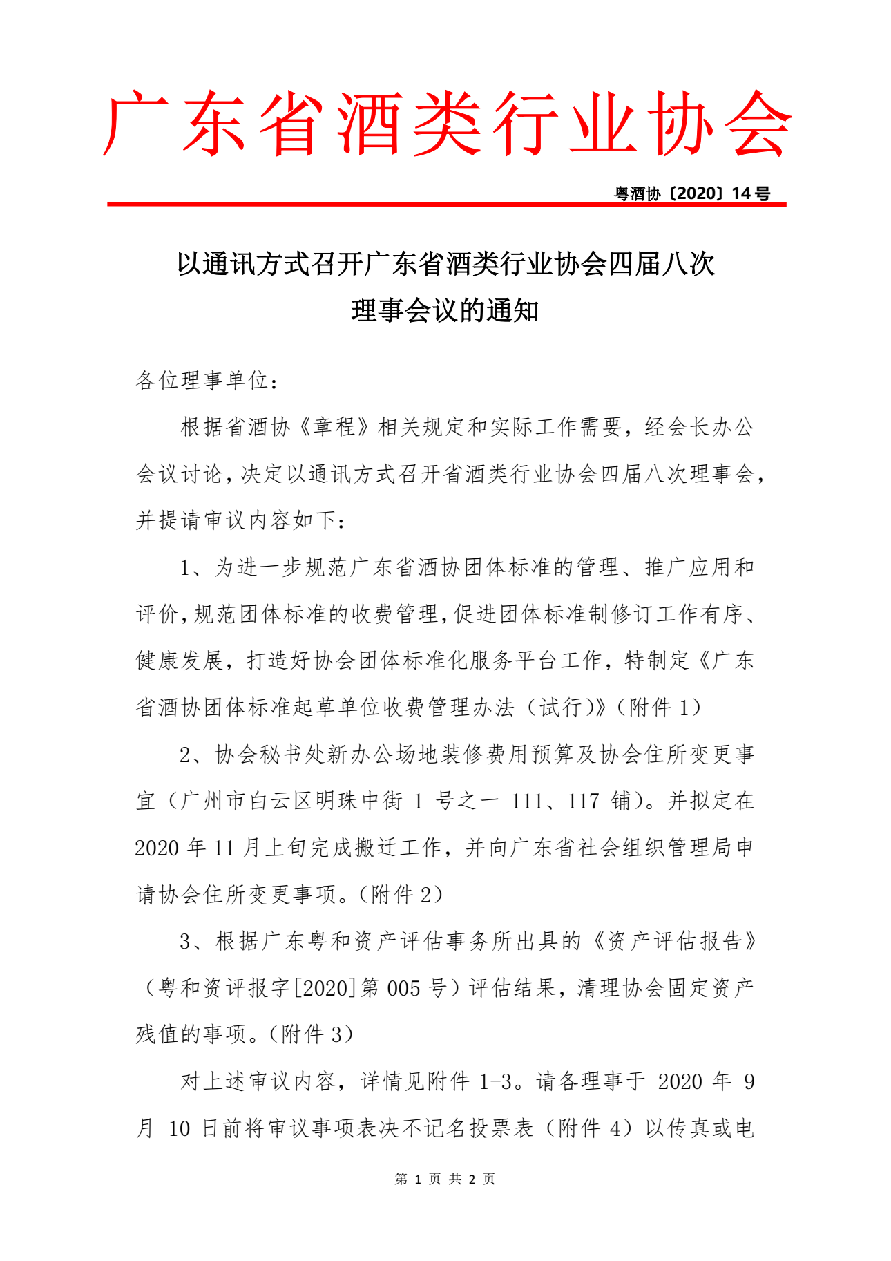 《以通讯方式召开广东省酒类行业协会四届八次理事会义的通知》的附件下载 ...