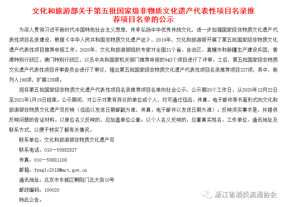 2020年12月18日,文化和旅游部公布第五批国家级非物质文化遗产代表性项目名录...
