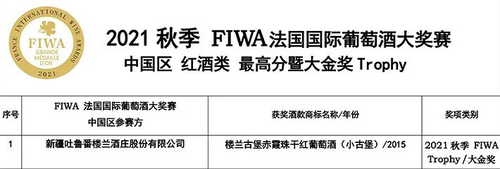 双喜临门 2021年10月8日至10日,法国国际葡萄酒大奖赛(FIWA)在巴...