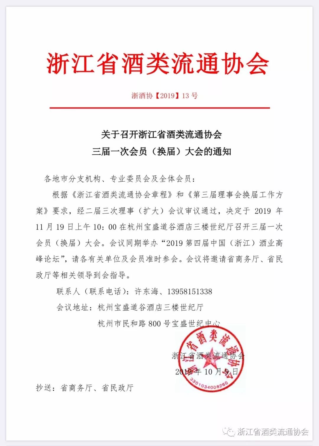 2024.03.15 19:102019第四届中国(浙江)酒业高峰论坛暨三届一次会员大会通知
