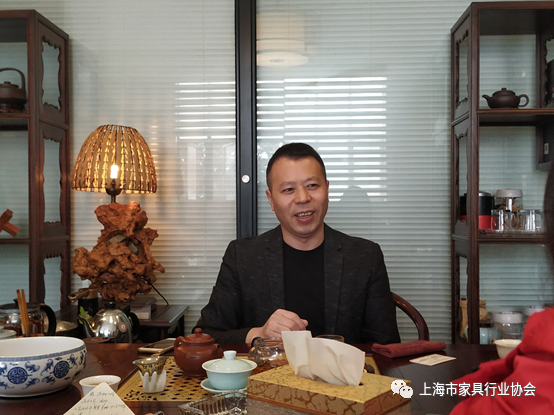2020年10月27日上海家协走访鼎邦红木家具有限公司,董事长陈朝阳接待上海家协...