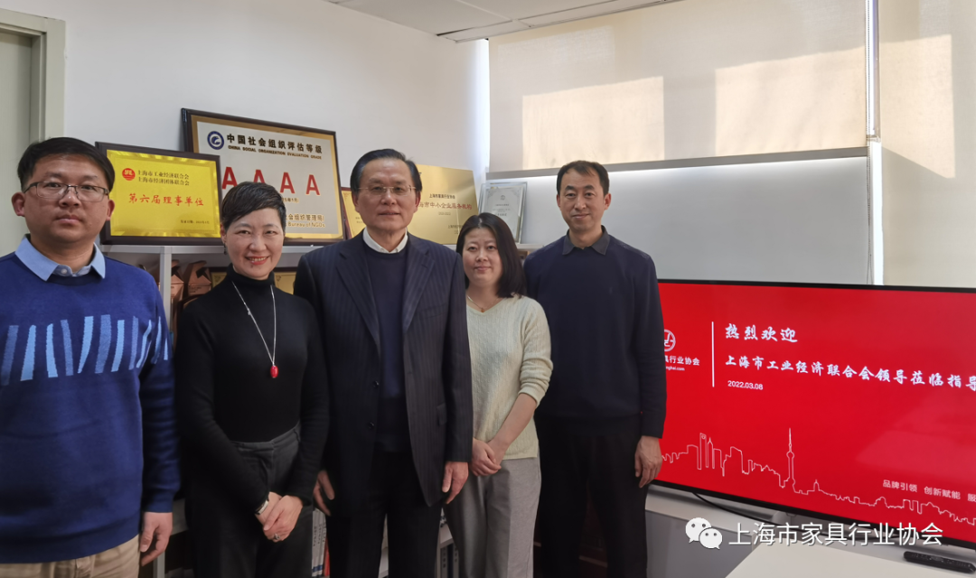 2022年3月8日上海市工业经济联合会党委书记、会长管维镛一行来到上海市家具行...