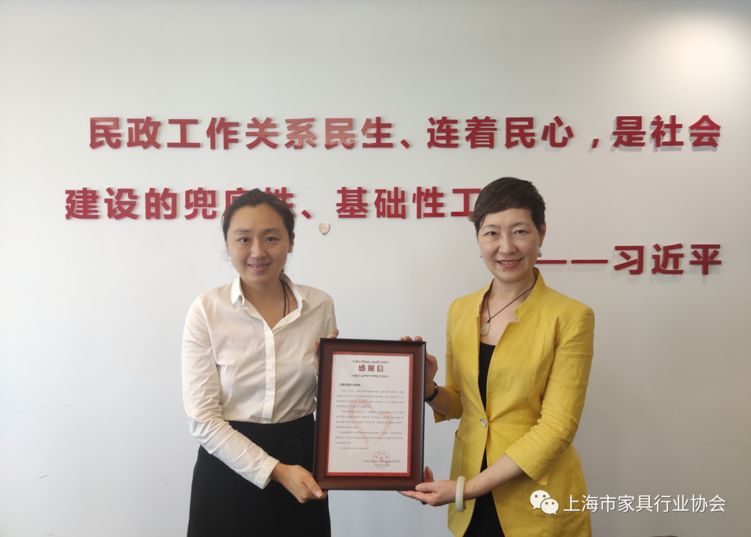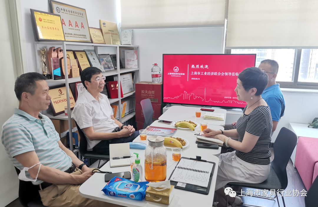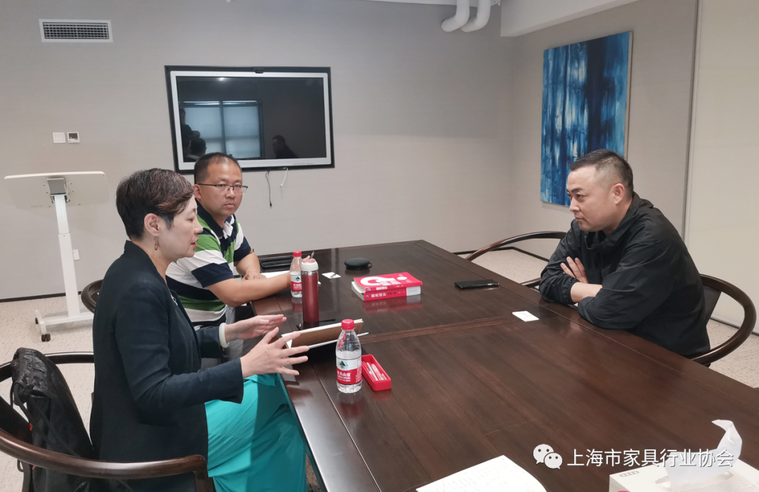 2022年8月9日上午,上海市家具行业协会秘书长李霞、综合部主任陈宇浩、信息部主...