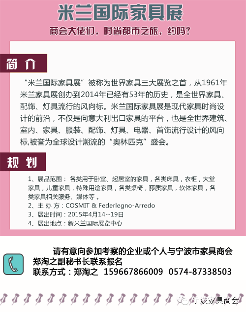 商会组织2015商务考察团(共4期)第一期:米兰国际家具展 我会组织商...