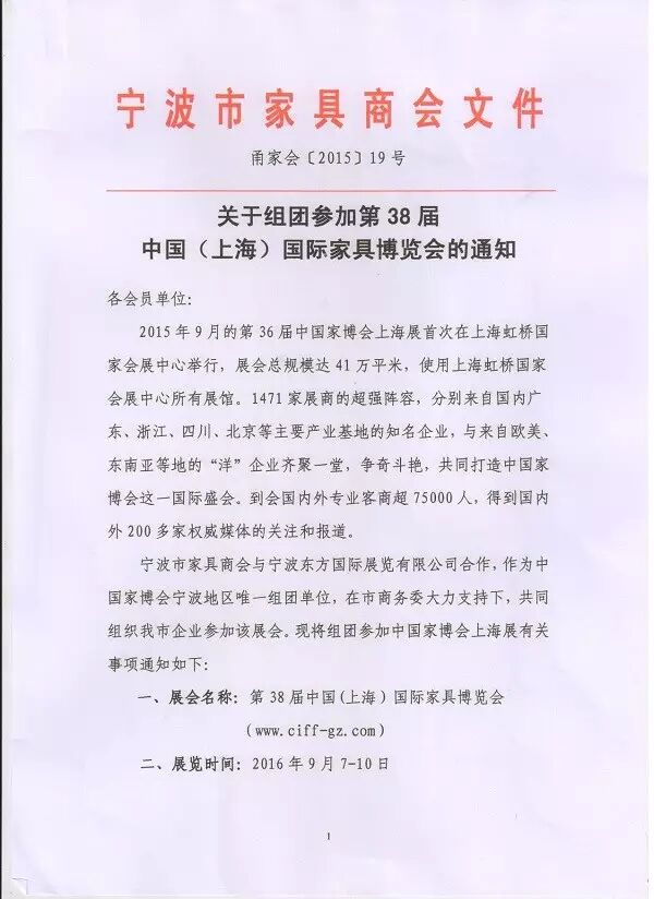 2024.03.18 11:49关于商会组团参加第38届中国(上海)国际家具博览会的通知