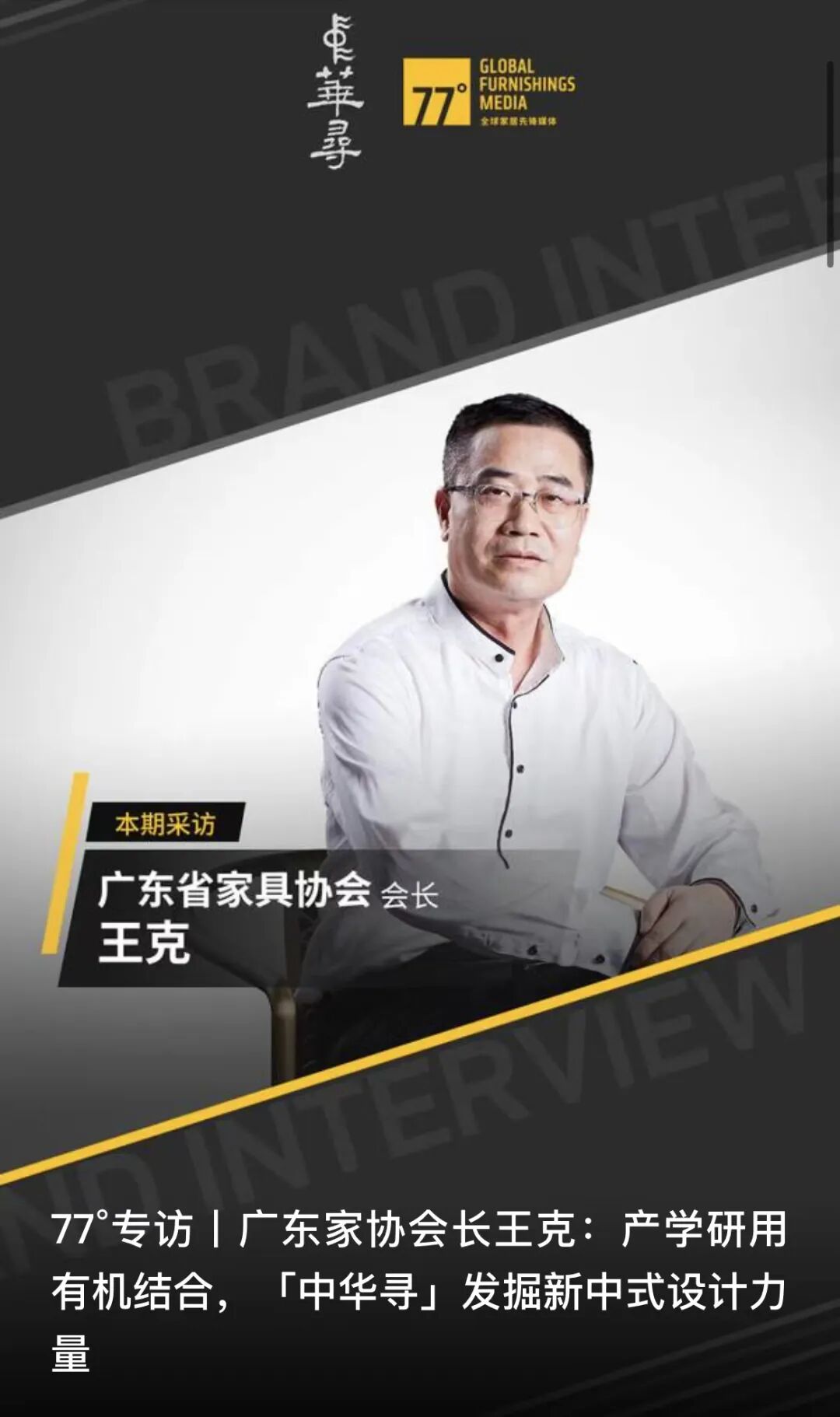【媒体关注】77°专访丨广东家协会长王克:产学研用有机结合,「中华寻」发掘新中式设计力量