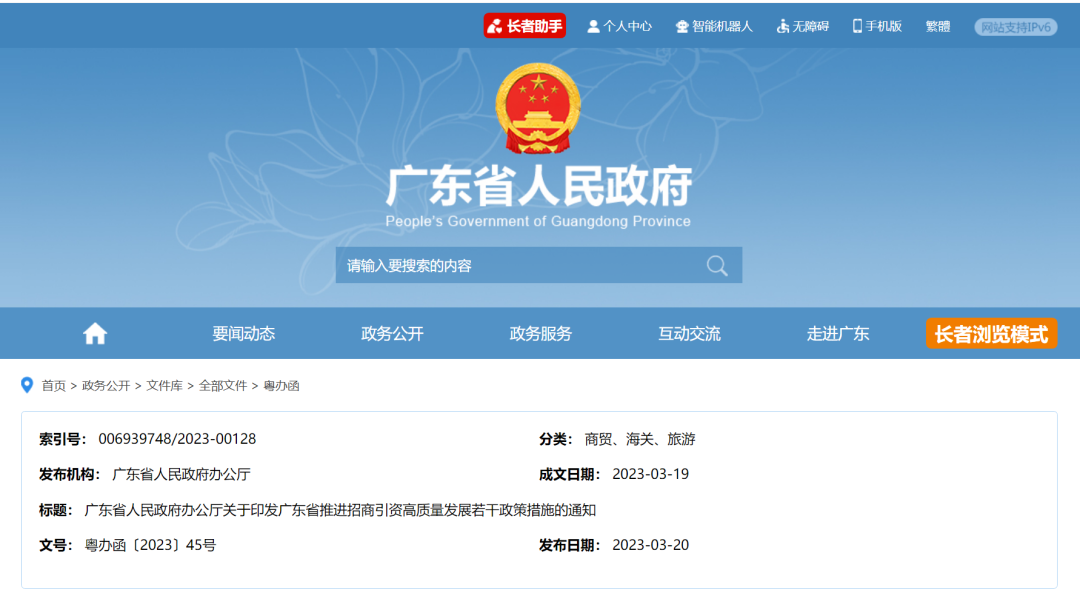 【政策法规】广东省推进招商引资高质量发展若干政策措施