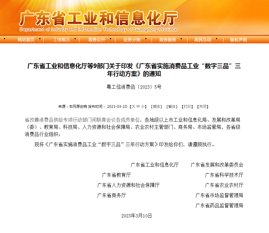 【政策新规】广东省实施消费品工业“数字三品”三年 行动方案