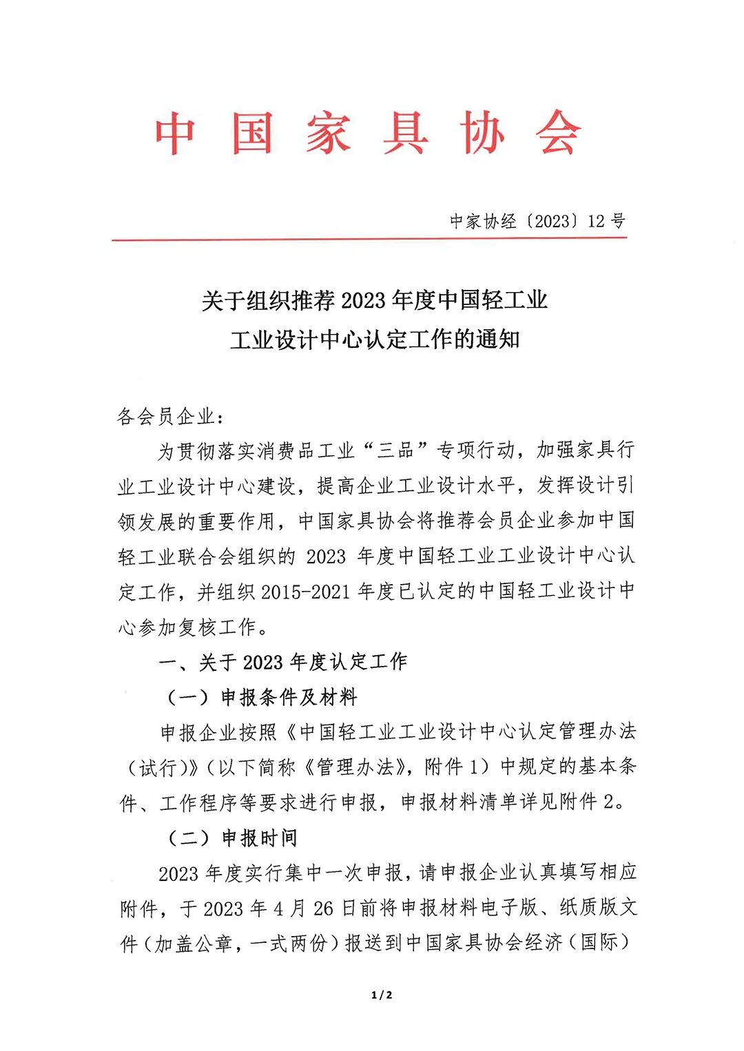 【热点关注】关于组织推荐2023年度中国轻工业工业设计中心认定工作的通知