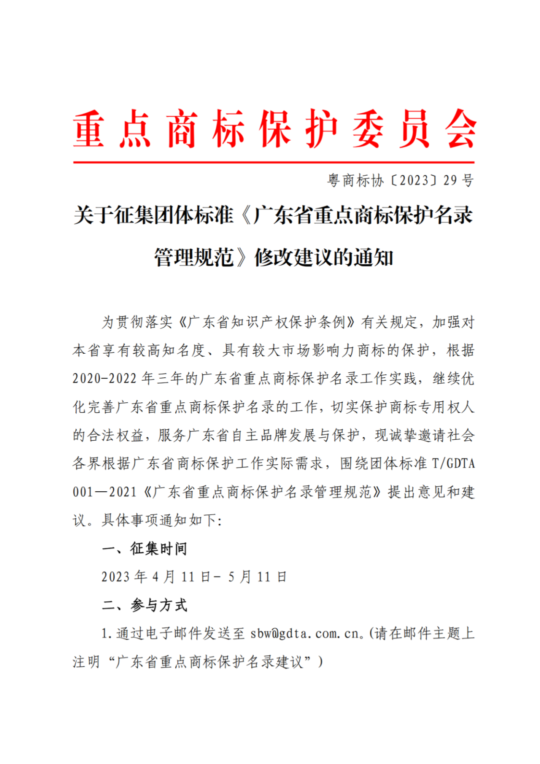 【转发通知】关于征集团体标准《广东省重点商标保护名录管理规范》修改建议的通知