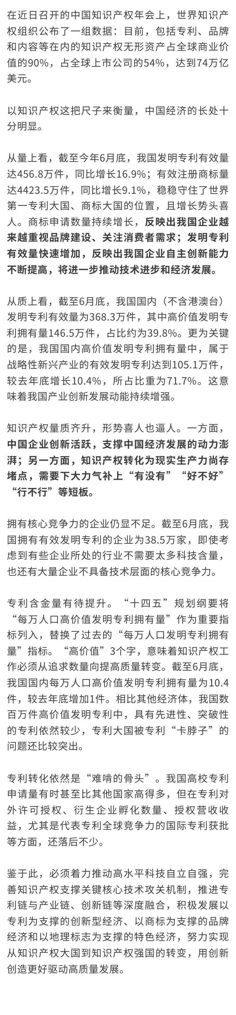 【热点关注】经济日报金观平:强化知识产权全链条竞争力