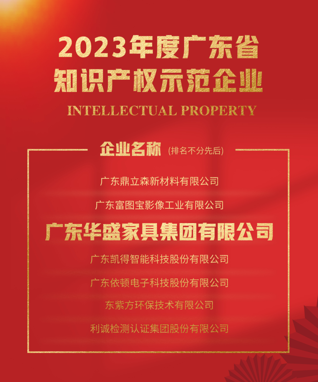 【会长风采】华盛家具集团荣获“2023年度广东省知识产权示范企业”殊荣