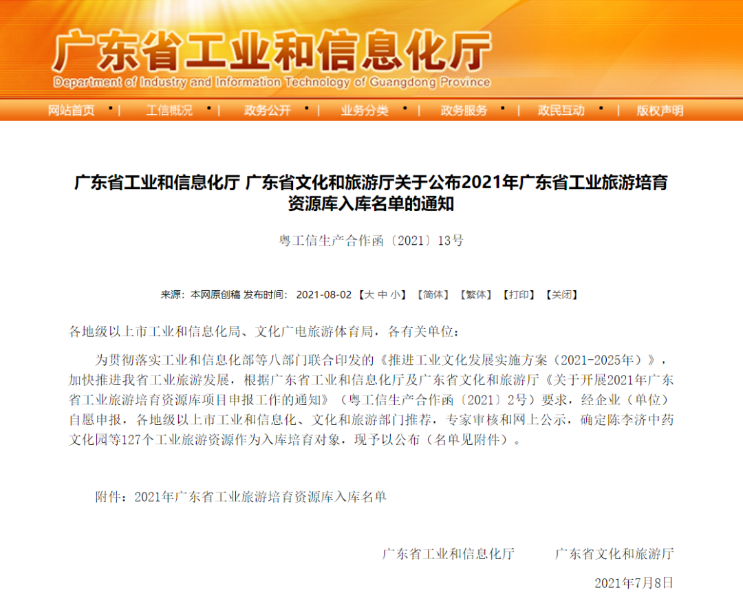 【协会信息】广东家协3家会员单位入选2021年广东省工业旅游培育资源库