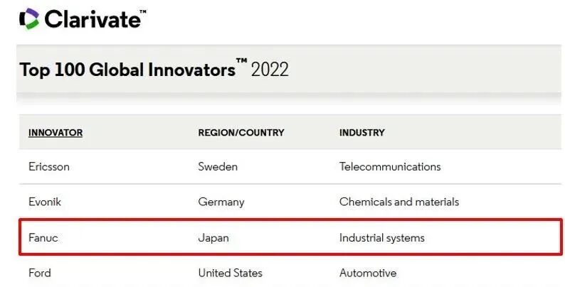 【会员风采】FANUC 荣登 “2022年全球百强创新企业”榜单
