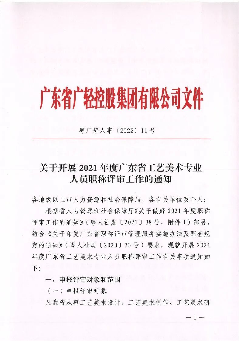 【协会通知】关于配合做好2021年度广东省工艺美术专业人员职称评审工作的通知