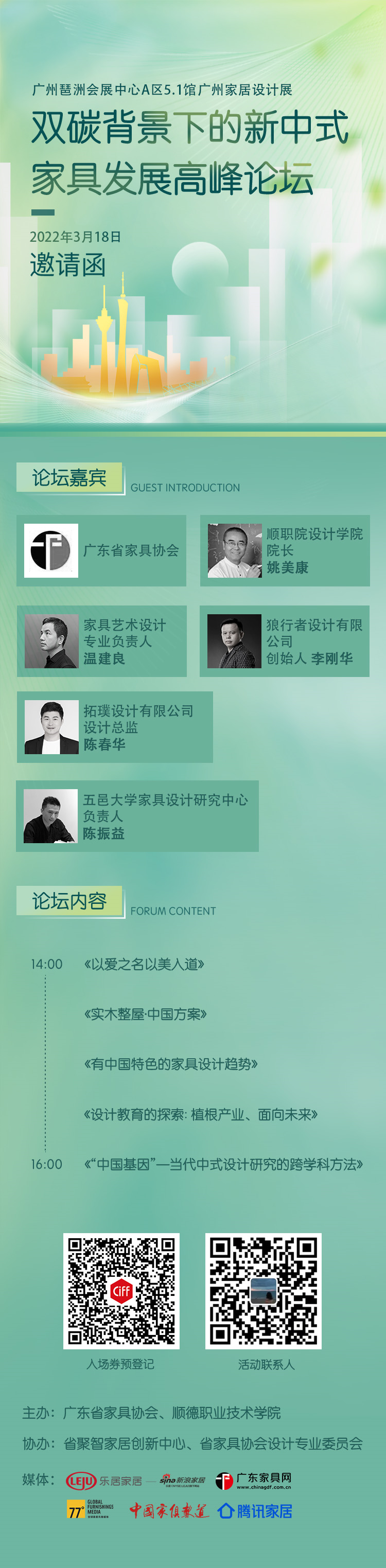 【设计展】您有一份邀请函,请查收!3月18日广州家居设计展“双碳背景下的新中式家具发展高峰论坛”