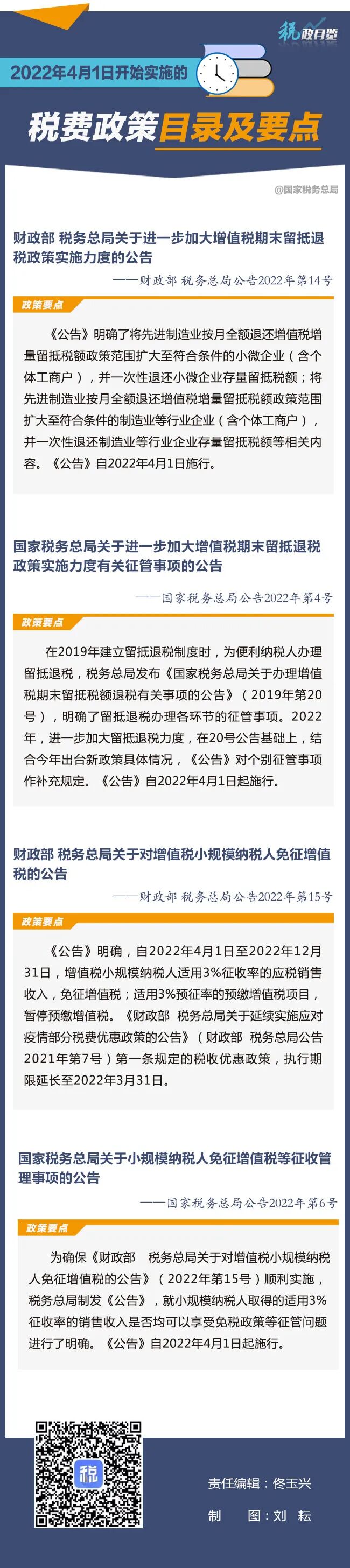 【税务资讯】扩散周知!2022年4月1日开始实施的税费政策