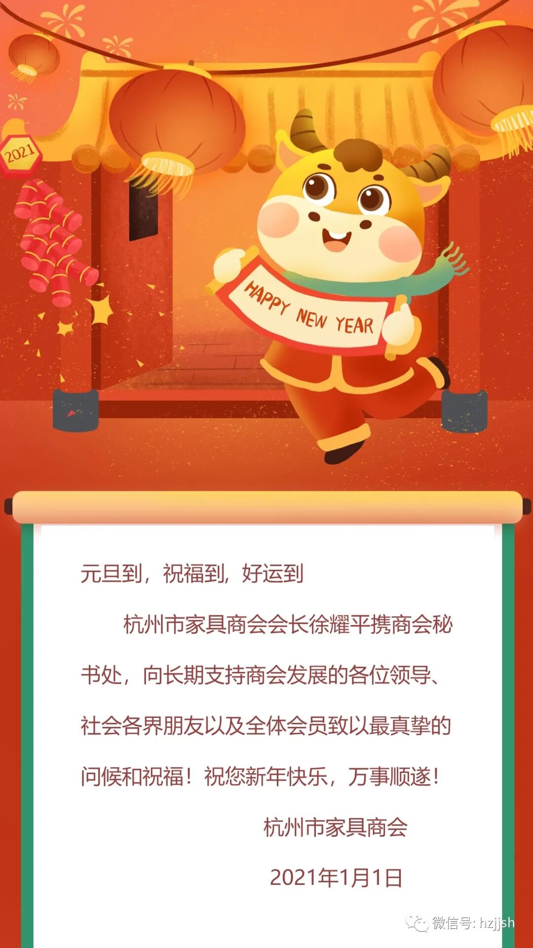2024.03.20 10:09【节日祝福】杭州市家具商会恭祝大家元旦快乐,幸福安康!