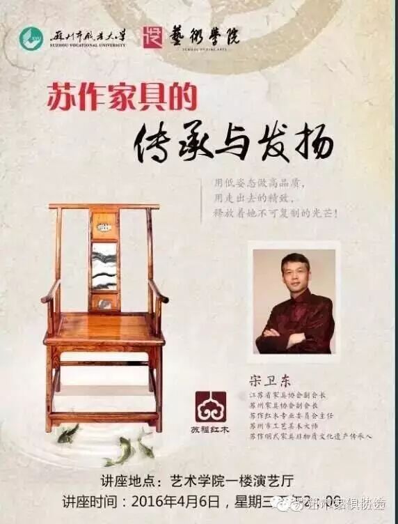 2016年4月6日下午,苏作明式家具非遗传承人宋卫东大师应邀来到了苏州市职...