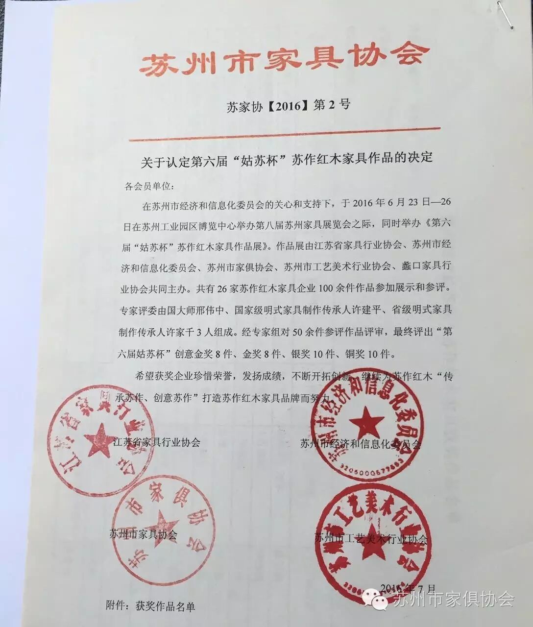 2024.03.20 10:34第六届“姑苏杯”苏作红木家具作品获奖名单
