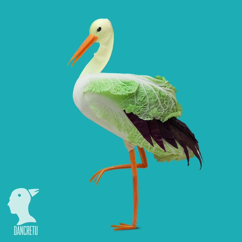 一颗大白菜、几片紫菜叶、若干根萝卜条,简单的拼凑便创造出一只栩栩如生的雪...