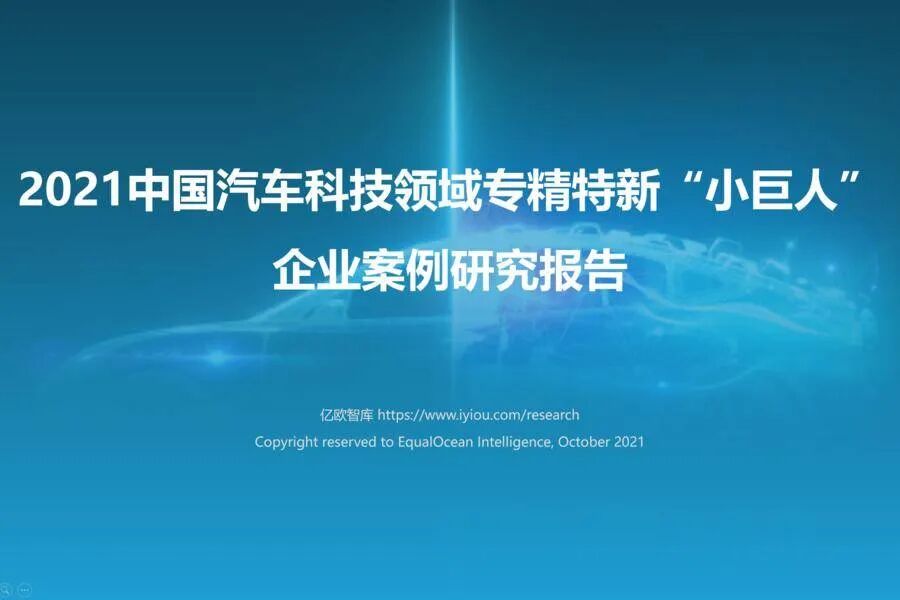 亿欧智库正在撰写《2021中国汽车科技领域专精特新“小巨人”企业案例研究报告》,...