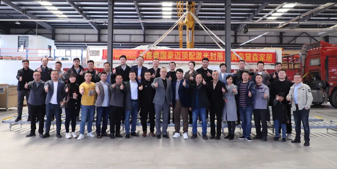 2023年4月8日,德国豪迈激光封边机落地仪式在青岛黛森全屋定制家居产业园成功举...