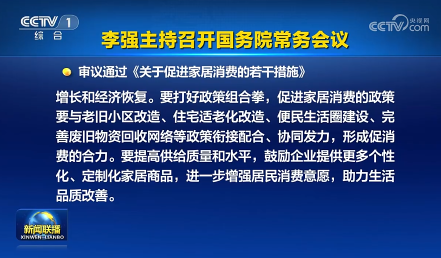 国务院常务会议审议通过《关于促进家居消费的若干措施》