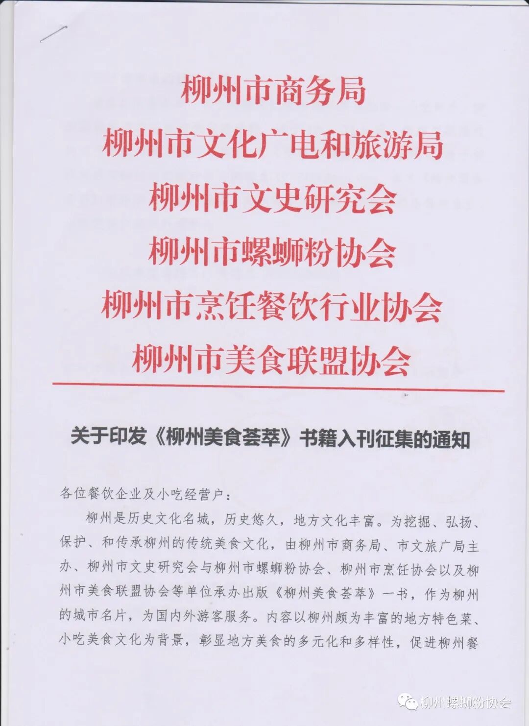 关于印发《柳州美食荟萃》书籍入刊征集的通知