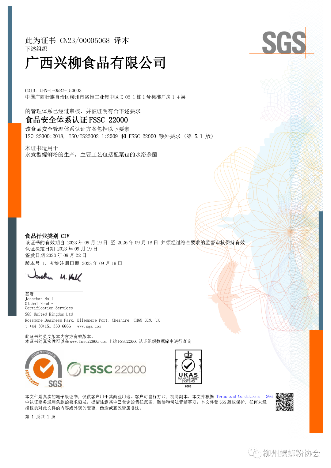 近日,广西兴柳食品有限公司顺利通过FSSC22000食品安全体系认证,这也是...