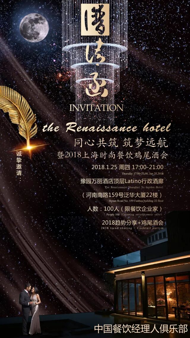 同心共筑 筑梦远航2018上海连锁餐饮鸡尾酒会——中国餐饮经理人俱乐部 中国餐饮经理人俱乐部,是在中国烹饪协会的指导下,