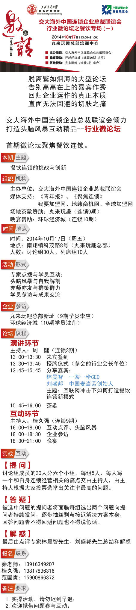 欢迎广大连锁学员、餐饮企业积极报名参加!名额有限,报名速度!