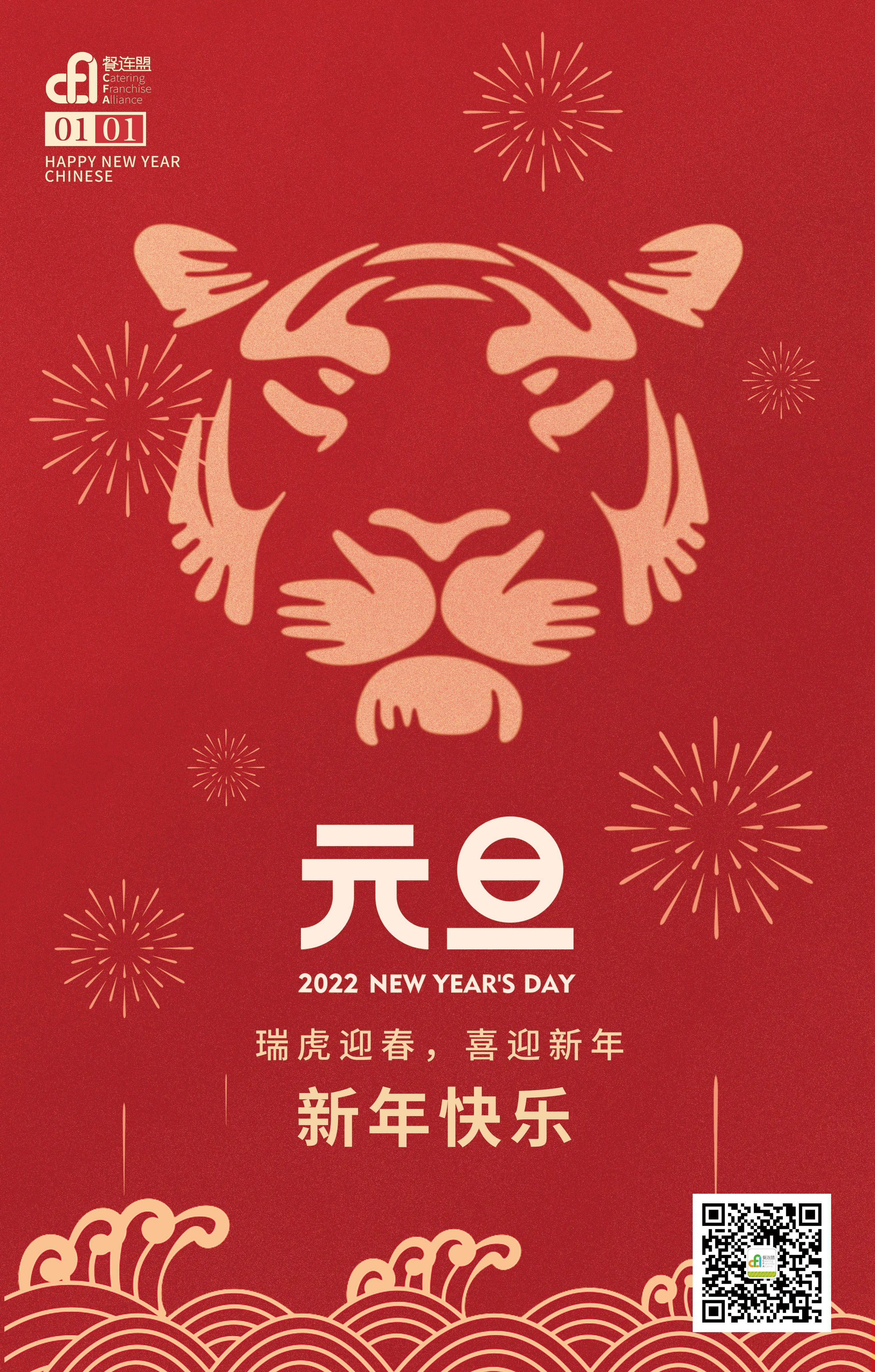 【元旦快乐】2022金虎送福,CFA餐连盟祝您新年快乐!
