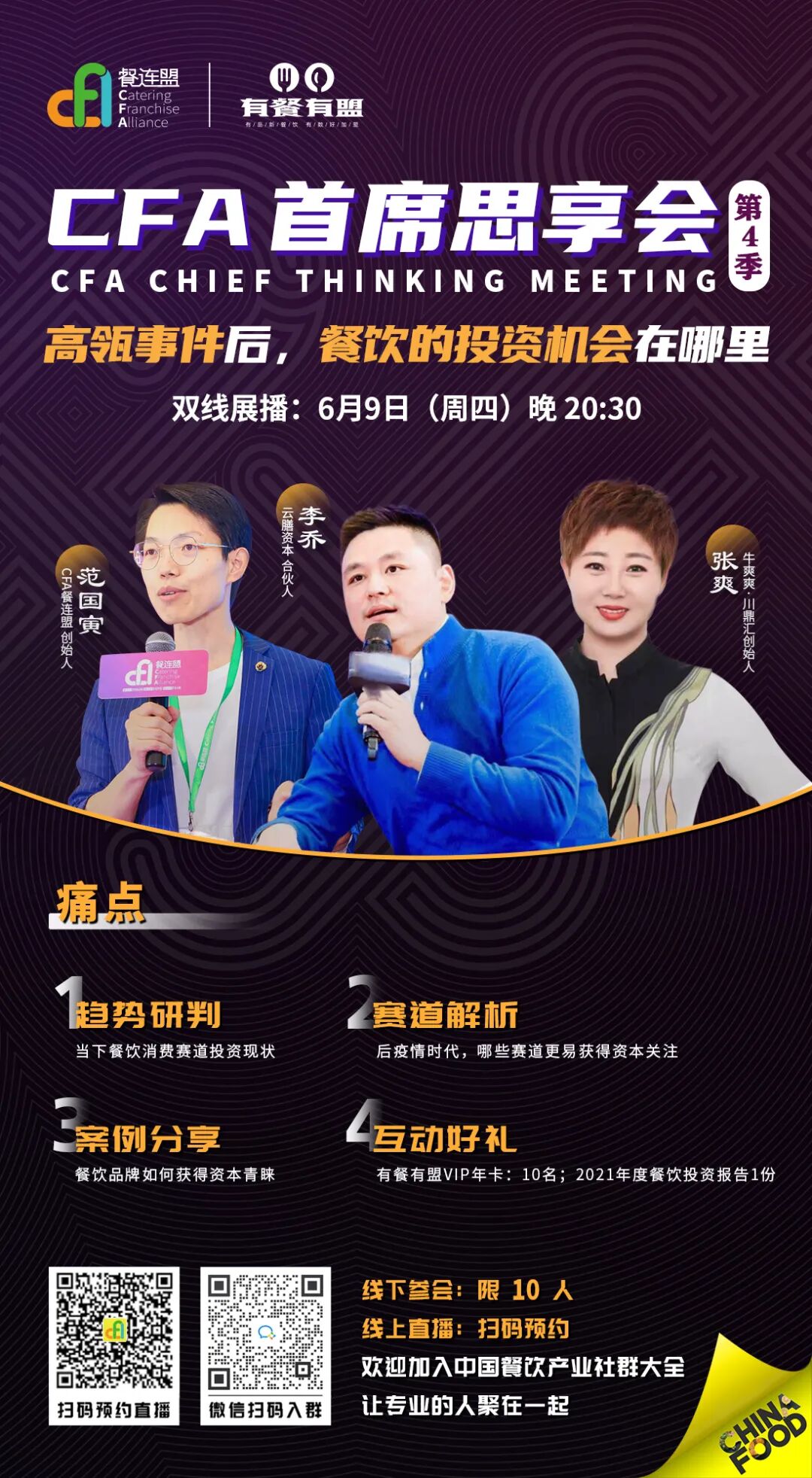 【直播预告】6月9日20:30,高瓴事件后,餐饮的投资机会在哪里?CFA首席思享会第4季